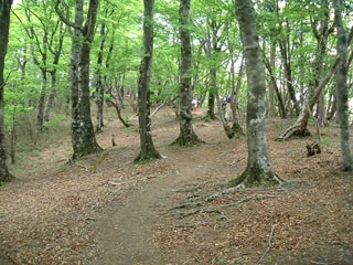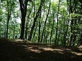 林の中。尾根上では寒くなるくらいの涼しい風が流れる。