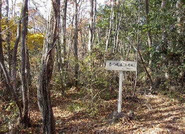 何と古道のような段差の先に豊能町のハイキングコース指導標が「吉川城址」、その横に