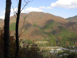 軽いおにぎり昼食。道路を高代寺へ戻る手前で林の間から妙見山が垣間見えました。