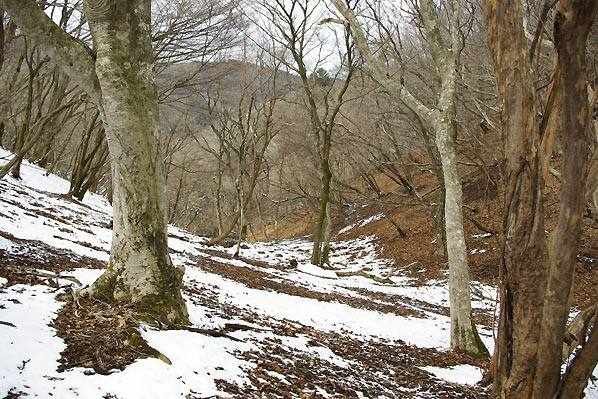 一本杉に登る手前の谷は雪が半分ほど解けていた。