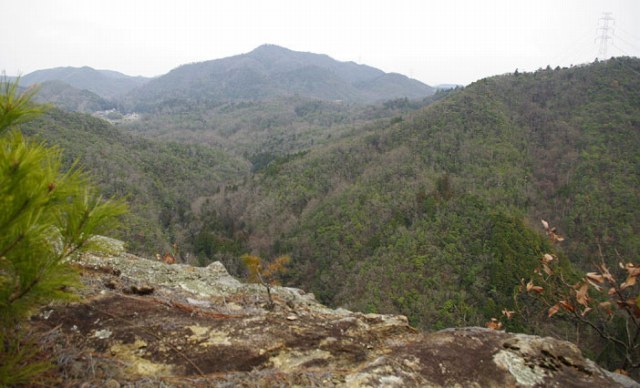 岩稜の南端からは大峰山や六甲山が見渡せる。ここから駐車地までは、この尾根を北上が当初予定であったが、