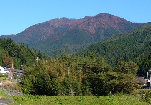 河内の里から望む (山頂は中央左奥)