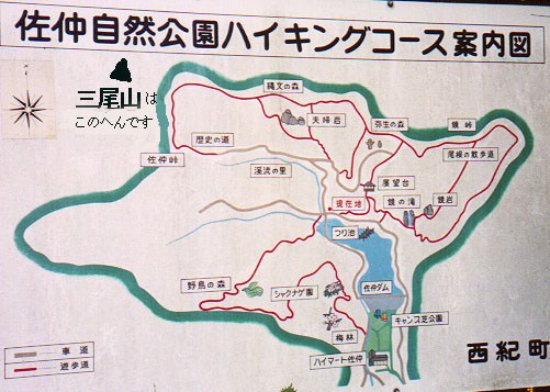 舞鶴道の篠山口ICと春日ICの間の道脇に「丹波の名山、三尾山」の看板がある。 その後ろに岩峰を従えた山がそうだ。 城跡のあった山頂の北に、西峰と東峰がある。 ルートは北からと南からがメイン。東の尾根づたいの鋸山や南の夏栗山とセットで 訪れるのも良い。春はシャクナゲに会える。