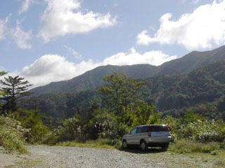 3台駐車。先に行けそうなので三嶺林道の終点まで向かう。ここも先客三台。青空が戻っている。