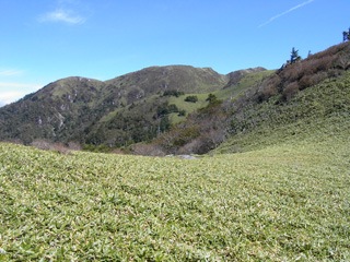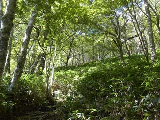| 三嶺林道の終点付近 | 林床はササ |