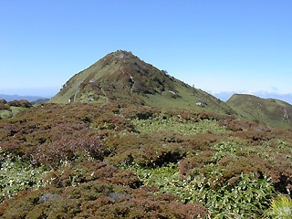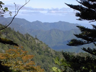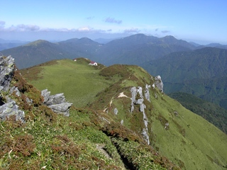 | 三嶺山頂から太平洋 | 山頂付近からヒュッテ |