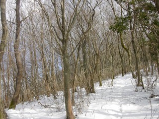 雑木の中を行く。雪が積もっていても山道はそれとわかる。しばらくするとお目当ての