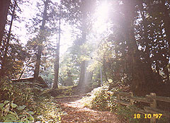 右手はブナ特別地区 前方奥には妙見さんの灯籠 1997.10.18. |
