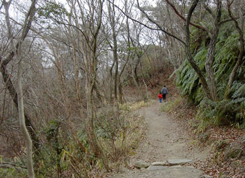 みると人影多い縦走路から一転、野趣あふれる巻道が雑木林の中に続く。こんもりとした