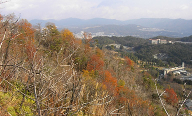 尾根から黄葉名残と妙見山方面