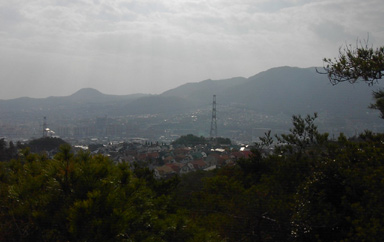 松の露地から甲山を見る
