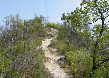 山道は展望は良いものの陽射しが強いのは応える。山道はからからに乾いています。