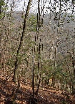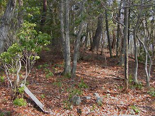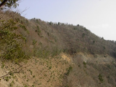 ここから南の斜面も雑木が続く。しかし、帰りに判ったことだがこの直下まで林道の浸食が達しています。