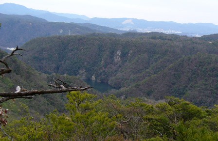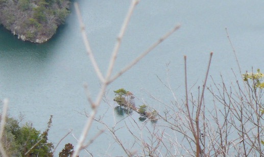 山頂から小島を見下ろす