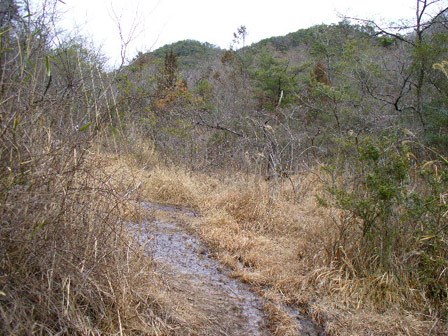 浸食の進む湿地から雑木に入り、くねくね上り下りを続けて北東へ進むと宝塚市域へ入って