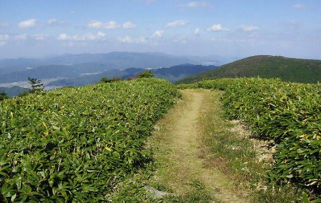 ササの原が広がる。西に加悦からのササ分け道が合流。雲は流れて晴れた空が広がってきた。
