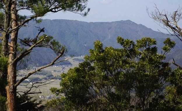 登ってみるとわずかな木々の隙間から三国ヶ嶽が見えた。左手には大船山の反射板が枝越し。