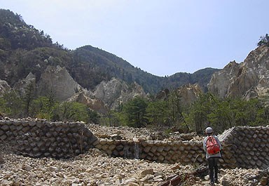 河原に出る。左岸寄りに堰堤をよじ登っていくと次第に広いゴーロの河原。予想した程には
