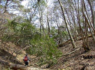 しばらく続き北からの道と合流する。明瞭な山道となり雑木林の中に延びて良い雰囲気。