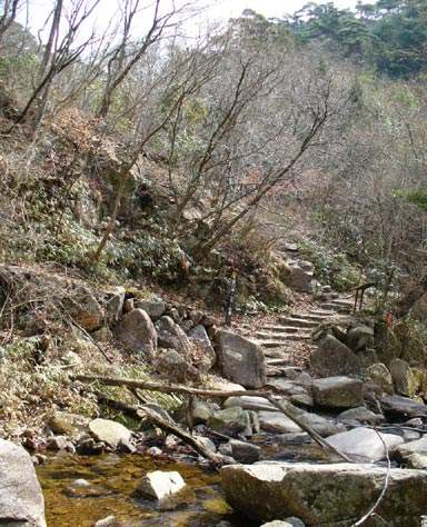 アップダウンが多く、マムシ谷分岐直前はちょっとした急登になっている。よく見ると堰堤の