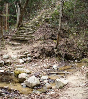 徳川道は階段の続く広い道だが、曇り空も相まってちょっと地味な雰囲気を感じる。