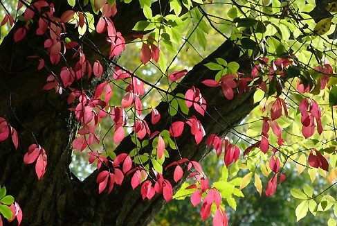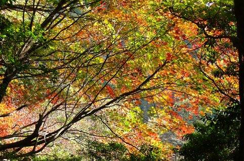 合わせて何人もの人とすれ違う。谷に射す陽がたくさんの葉の彩りを降り注いできます。