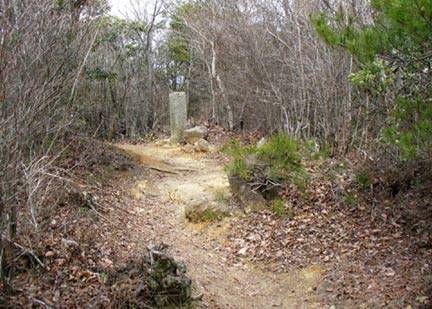 小広い谷になっていてちょっと良い感じ。再び木の階段を登り、雑木の尾根道が水平となり、ササが出てくると