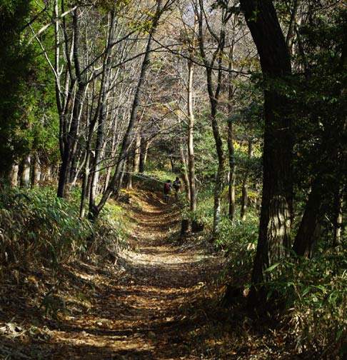 ササが茂り、本日一番の藪っぽい道。徳川道に合流し、下り一本調子の道は、疲れ気味の嫁さんにありがたい。