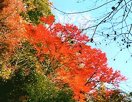 またまた、青空に真っ赤なモミジが羽を広げるように伸びている。感嘆の声があがる。