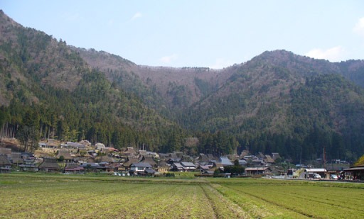 集落が並ぶ。そしてその背後、今日歩きたい雑木の尾根が見える。
