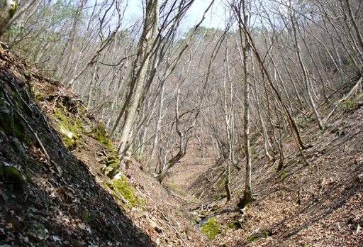 右斜面は、なるほどいい感じの雑木の谷が出てくる。左も木々の日影ながら奥は静かな雑木林。