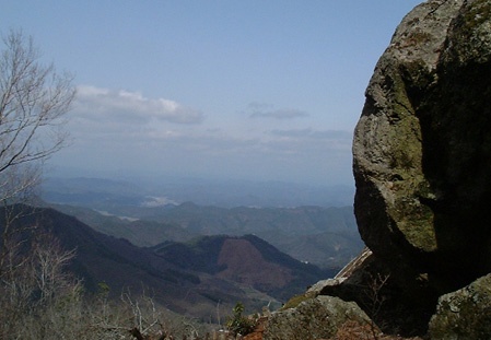はしごを上って岩の上に立つと相変らずの好展望。京丹波の山々がずらりと並ぶ。