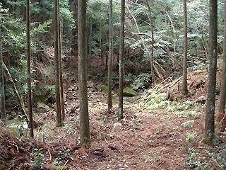 なんと岩の周りが伐採されていました。下の岩も顔を出し、その下の植林へ道が入って