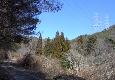 向こうなので登る気も失せます。あげくには電線と巡視道が交差し、電線の下をくぐる所も。