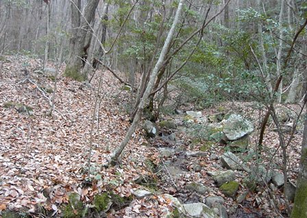 ここから北上する。踏み跡は判るが、人通りが少ないのだろう枝がはびこって、鹿が通る程度の