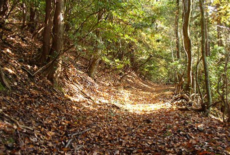 どんどん歩いていきます。古い道は落ち葉に覆われながらも少しずつ深くなってきました。