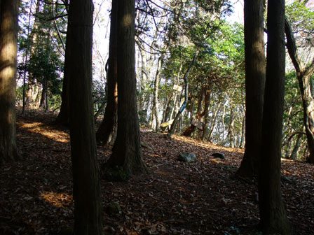 すぐに植林、それも手入れのほとんどない真っ暗な林。鞍部を登り返して小さなコブから今度こそ山頂への登り。