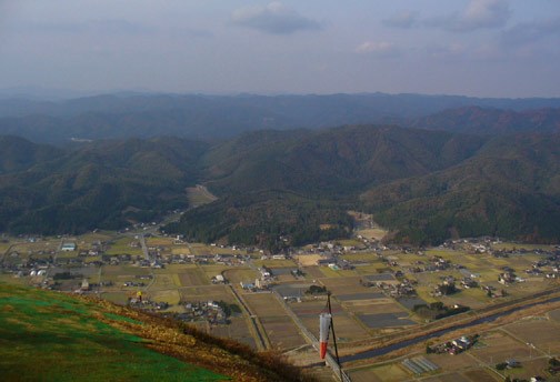 出て見ます。いい眺めです。望外の展望。山国の家並みや田畑が手に取るようです。