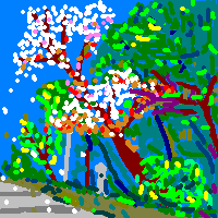 赤い新葉と白い桜の花が青空に映えてとてもきれいでした。