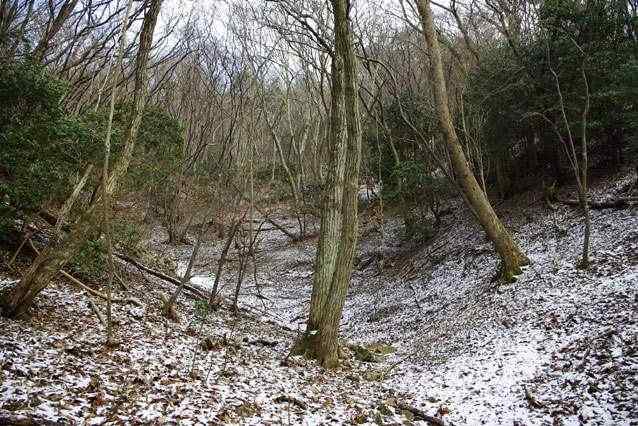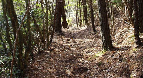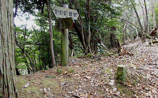 峠の向こう側は曽地へ下りる谷。その昔、四十九の寺院があったという。