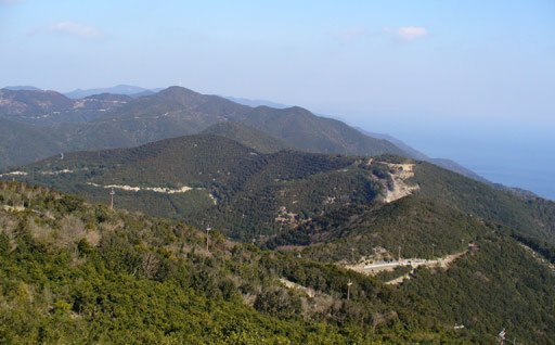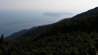 すると林道脇からも大きな木々が見て取れる。すごい森だ。しばらくするとみかん畑の斜面から