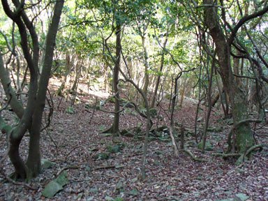 山頂への北からの登りかけの所は特に良い雰囲気だった。かしの大木もある。