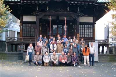 ◇第一開催日:2003年10月05日(日) 45名 ◇第二開催日:2003年10月19日(日) 23名 ◇集合時間:13時00分 ◇集合場所:地下鉄月島駅地上(佃交番前) ◇散策コース 月島駅地上(佃交番前)【出発地】 →浪除於咲稲荷→天台地蔵尊(大銀杏)→佃島舟溜→住吉神社(藤棚、枝垂桜)→[佃煮]【天安】 →石川島燈台跡→佃島渡船跡→佃大橋渡る→築地カトリック教会→慶応大学発祥地→浅野家上屋敷跡 →米国公使館跡→聖路加ガーデン展望室→築地資料館→勝どき橋→波除稲荷神社→浴恩園跡(中央卸売市場) →築地本願寺解散 ◇希望者懇親会:さかな道楽築地会館店藤棚(住吉神社)