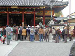 ◇開催日 第一開催日:2004年11月20日(土) 第二開催日:2004年11月21日(日) 第三開催日:2004年11月28日(日) ◇出発時間:12時30分 ◇集合場所:JR上野駅パンダ橋 ◇解散場所:雷門前 ◇解散時間:16時30分 ◇参加人数 第一開催日:32名+staff 第二開催日:36名+staff 第三開催日:43名+staff ◇散策コース 浅草というとポピュラーですが、仲見世から浅草寺までではなく、 上野から浅草寺町の地域を散策したいと思います。名所・旧跡か らおいしい店、面白そうなものも観てみたいと思います。 ◆散策コース JR上野駅パンダ橋【出発地】 →寛永寺子寺跡 →広徳寺跡 →下谷神社B(大銀杏 ギンナン) →永昌寺 →誓教寺 →報恩寺 →源空寺B →秋葉神社 →曹源寺C →矢先稲荷神社B →聖徳寺 →祝言寺 →(休憩:松葉公園or ジョナサン) →東京本願寺C →本法寺 →合羽橋道具街 →清光寺 →雷門B →仲見世 →宝蔵門 →観音堂(トイレ) →ニ天門B →浅草神社A(槐の木) →影向堂 →薬師堂 →西参道 →鎮護堂(伝法院庭園が見える) →仲見世 →雷門前解散※インド菩提樹、クワ科イチジク属 葉の先端が細長い 菩提樹は別種、シナノキ科 伝法院庭園-------------浅草神社前-------------浅草寺(ライトアップ)