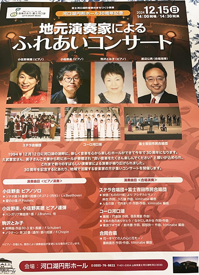 今年は少し演奏も勉強しながら仕事しようと思います。八王子クリエイトホール(生涯学習センター)にて「風の会」~歌は翼に乗って~