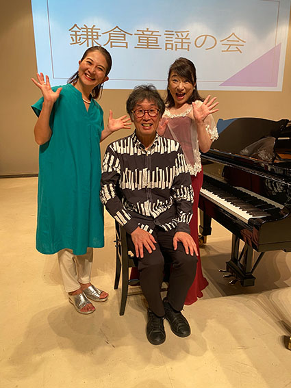 「鎌倉同様の会」があり、我々はリーダーとピアニストとして参加しました。この会の主宰は村田さんがやってくださっています。鎌裏童謡の会はAとBがあって我々は鎌倉駅に近い【鎌倉学習生涯センター】で実施しています。この会は玉川大学の恩師、江口正之先生が残してくれた社会貢献です。妻の実穂がリーダーで進行して、皆さん、大喜び、、、笑あり、満足してくださったようです。