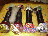 (注意点) を得ることができた。これは貴重な体験である。 また、市販そのままの、いわゆる ”吊し” の状態で使うのであれ、そこから仕様変更するのであれ、自分の使用状況についてよく考え、選定根拠を深く掘り下げた上で構成パーツを選ぶことが重要である・・・と (恥ずかしながら) 再認識するようになった。欲しいからといってすぐに落札し、そのまま装着するようでは進歩がない。もちろん、入手したそのままの仕様が十分納得できるものである場合には、それで良いのだが。 例えば、今回の例で言うと、クスコ・バカンツァ車高調の前後スプリングレート (フロント6.0 [kg/mm]、リヤ4.0 [kg/mm] ) が自分にとってベストかどうか? 他のベターな選択肢が無いかどうか・・・といった検討である。換言すれば、車重の前後配分 (前後輪にかかる荷重分担) に合わせてスプリングレートを検討してみる必要もあるだろう、といったことである。 そういった観点に立ち、新たに縁あって選んだのが、現在装着している 「圭オフィス・タイプTD-II 車高調・混成仕様」 である。その詳細については、本節の続編となる 第三部 (2004-03-10 現在、作成中) にて紹介させていただこうと思う。 ◆ ◆ ◆ ◆ ◆ ◆ ◆ ◆ ◆ ◆ ◆ ◆ ◆ ◆ ◆ ちなみに、(フロントのみであるが) 装着したその日に取り外し、お蔵行きとなった旧バカンツァ車高調は一体どうなったのか? 機会を伺い、しばらくしたのち、オークションに出品した。もちろん、各構成パーツを全分解して清掃し、磨けるところは磨き、入手したときとは想像もつかないくらいキレイにメンテしての出品である。清掃したおかげで、出品画像が思いのほか立派なものになってしまったので、おまけ (私のせめてもの真心?) として、新品未使用の大容量パーツクリーナーも付けることにした。逆さ使用もOK、というジャンボ缶だ。 もちろん、落札者様とのトラブルは避けたいので、バンプラバーが劣化して交換が必要であること、程度はあまり良くないことなど、好ましくない (と思われる) 事実はそのまま注記した。開始値は、十分に格安からのスタートとした。ただ、ダメ元(もと)で、私が入手したときと同じ価格を希望落札価格に設定して出品した。 出品開始からウォッチ数は上昇。仕様についての確認の質問も数件続く。開始値を安く設定したこともあり、早くも複数の入札者様が現れた。まずはホッと一安心。と思ったところで、オークションマスター (システム管理者) から1通のメールが私の元に届いた。「また質問が来たのか?」 と思いながらよく見てみると、何と、希望落札価格で落札されたことをお知らせする通知メールであった。 結局、クスコ・旧バカンツァ車高調は、私が落札したときと同じ価格で、新しいご主人様のところに旅立って行った。おまけのパーツクリーナーとともに・・・。ちなみに梱包は、これでもか、というくらいにしっかりと気を遣って行った。これだけでも、新しい落札者様は、私が大切な商品として取り扱っていたということを汲(く)み取ってくれただろうと思う。 【画像8】 細心の注意を払い、丁寧に梱包している最中の画像 こうして私は、実質的な損失無し (自腹を切ったのはパーツクリーナー代のみ) で、車高調をお試し装着し、貴重な失敗経験という 「肥やし」 を手に入れたのであった。一時はどうなることやら・・・と先が思いやられたが、終わってみると、十分に ”成功 (反面教師?) ” だったと言えるかも知れない。 ・・・さらに To Be Continued である。 ◎第一部 :