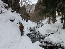 除雪終了点にて 沢沿いの下り