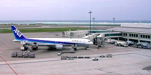 沖縄に来られる方の大半が、まず降り立つのがこの「那覇空港」ですが、今年(1999年)夏、新ターミナルが供用開始となり、一段と便利になりました。 旧ターミナルは、本土向けの第一ターミナル、離島向けの第二ターミナルに分かれている上に、狭く老朽も目立っていましたが、このたび新しくなった沖縄の玄関をご紹介します。 |