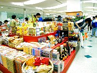 旧ターミナルでは、いわゆる土産物屋は、スペースの関係でそれほど充実しているとはいえませんでした。 しかし、新ターミナルとなって、売り場面積の拡大にしたがって、およそ本島内で売られている土産のほとんどは空港で手に入るといっても過言ではないと思われます。 青果、菓子類、酒類、アクセサリー類を始め、ありとあらゆるものがそろっており、当然のことながら、書店、薬局、銀行も完備されています。 |